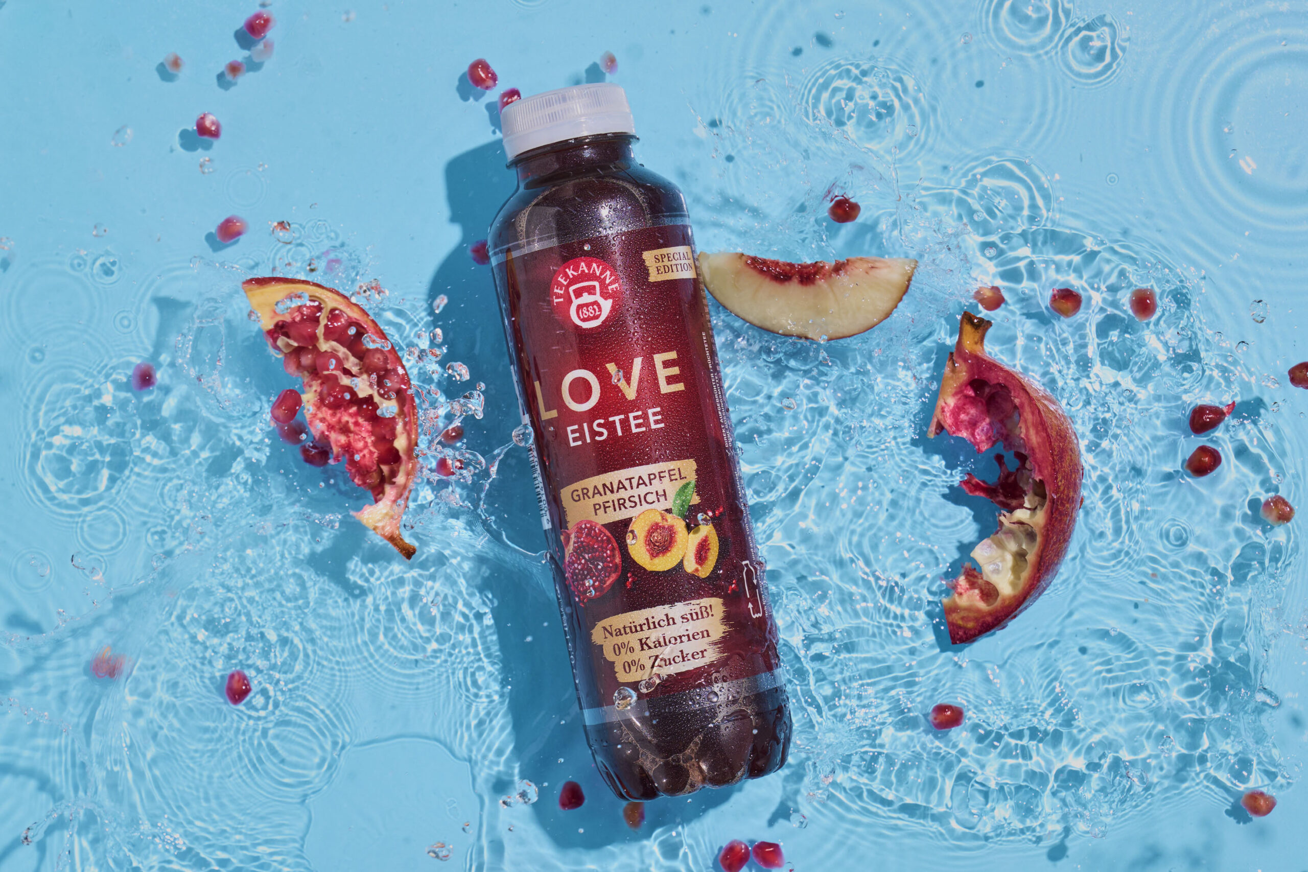 Auch beim trinkfertigen EISTEE von TEEKANNE, der in der 0,5-Liter rePET-Flasche erhältlich und daher ein idealer Durstlöscher für unterwegs ist, gibt es in dieser Saison etwas Neues: Die beliebte Geschmacksrichtung „Granatapfel-Pfirsich“ ist als LOVE-Edition in den Regalen zu finden. Der direkt aufgebrühte Früchtetee aus 100% natürlichen Zutaten, der komplett ohne Zucker und Süßungsmittel auskommt, ist eine fruchtige Kombination aus saftigen Pfirsichen und roten Granatäpfeln und bietet sommerliche Erfrischung und puren Tee-Genuss. „Kalte Tees sind eine zucker- und kalorienfreie Getränkealternative, die trotzdem reich an Geschmacksnoten ist und den Körper mit ausreichend viel Flüssigkeit versorgt“, freut sich Thomas Göbel, Geschäftsführer TEEKANNE Österreich und Osteuropa.