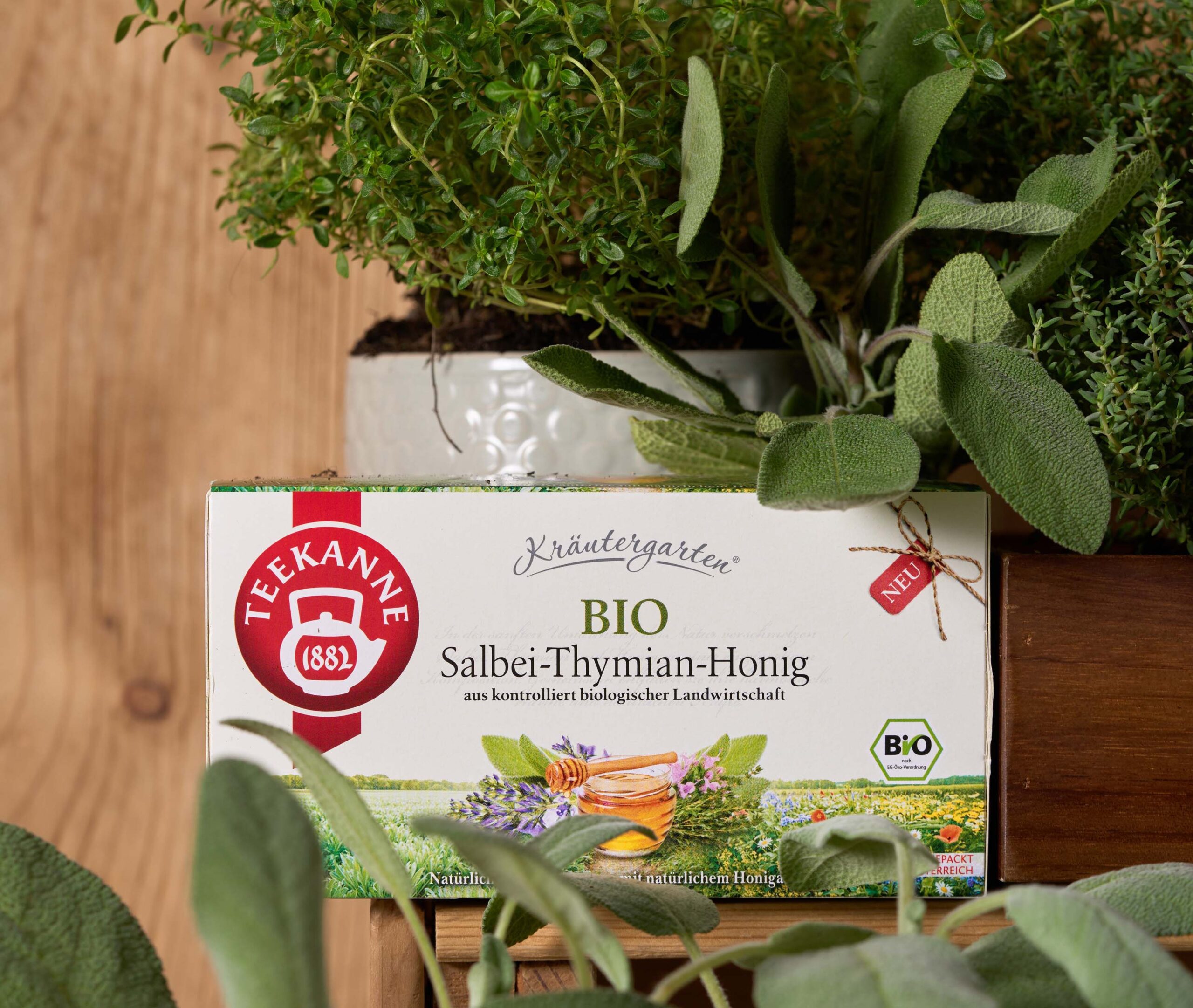 Der TEEKANNE-Kräutergarten wächst: Neue Bio-Sorte Salbei-Thymian-Honig
